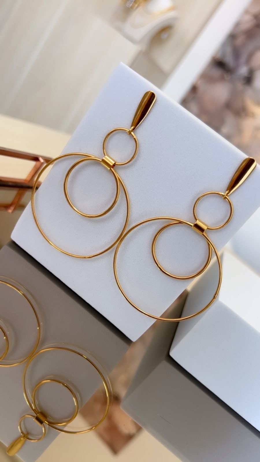 Este brinco é uma joia moderna e impactante, composta por dois elos circulares interligados, criando um visual único e sofisticado. Os elos, um dentro do outro, proporcionam um design geométrico que chama a atenção, trazendo harmonia e movimento à peça. Com sua presença marcante, ele é perfeito para quem deseja um acessório ousado, mas com elegância, capaz de transformar qualquer look em uma produção cheia de estilo.