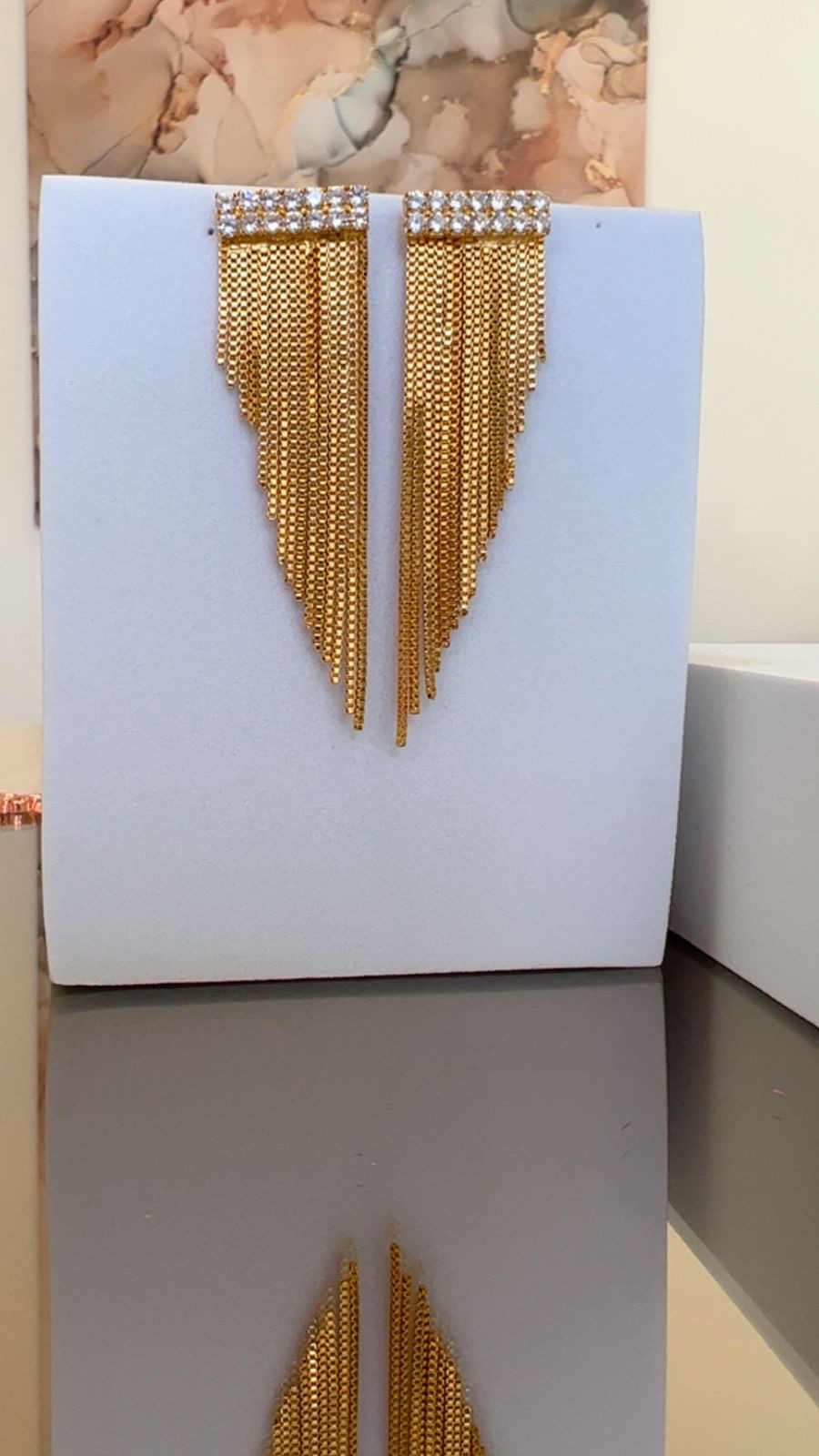 O Brinco Franja Eclipse é marcante, com franjas delicadas que trazem movimento e leveza ao look, com várias cravejações em zircônias no pino que acrescentam um toque de brilho discreto e elegante. Suas linhas fluídas criam um efeito encantador a cada passo, proporcionando um toque de sofisticação e modernidade. Ideal para quem deseja complementar o visual com estilo e elegância, seja em ocasiões especiais ou no dia a dia.